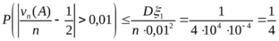 — независимые с. в., имеющие одно и то же распределение Бернулли с параметром 1/2. Домножим обе части неравенства под знаком вероятности на