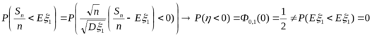 Согласно ЦПТ или предельной теореме Муавра — Лапласа, последовательность