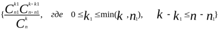 Доказательство. Рассмотрим подробно, чем отличаются друг от друга два разных результата такой схемы выбора. Нам не важен порядок номеров, то есть мы учитываем только, сколько раз в нашем наборе из k номеров шариков появился шарик номер 1, шарик номер 2, … , шарик номер n. То есть результат выбора можно представить набором чисел k1, k2, …kn, в котором ki — число появлений шарика номер i в выборке, и k1+ k2+ …+kn.= k. При этом два результата эксперимента различны, если соответствующие им наборы k1, k2, …,kn не совпадают.