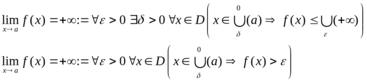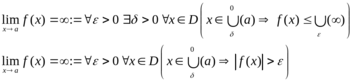 Если в общем определении предела через окрестности положить в качестве А бесконечно удаленную точку, то получим определение бесконечного предела.