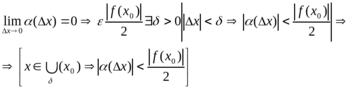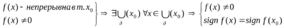 непрерывна в точке х0 и ее значение в этой точке отлично от нуля, то существует целая окрестность х0 , в которой ф-ия не равна нулю и сохраняет знак f(x0)