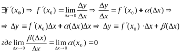 дифференцируема в точке х0 , если приращение ф-ии в точке сможет быть представлено в виде: