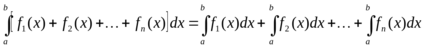 , тогда она интегрируема на обоих меньших промежутках и справедлива формула: