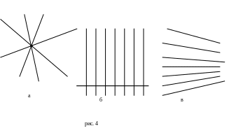 И, наконец, пучок, образуемый прямыми, параллельными данной прямой в заданном направлении (рис. 4в).