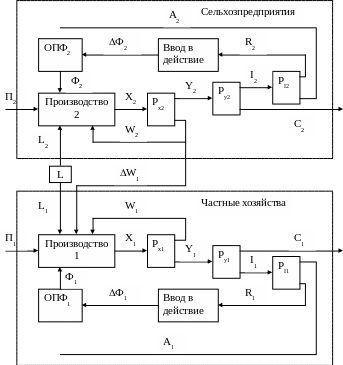 | (1-)a2X2 | Доля валового продукта коллективных хозяйств, идущая на инвестиции в частные хозяйства. |