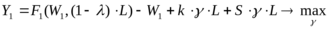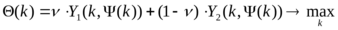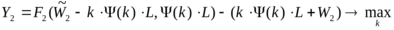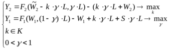 Вернемся к задаче (31). Напомню, что она характеризует действия дирекции, направленные не просто на увеличение прибыли своего хозяйства, но и на увеличении прибыли частных хозяйств. В данном случае вместо в функции Y1 и Y2 нужно подставить =(k). Задача примет следующий вид: