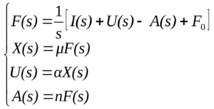 то есть амортизация пропорциональна текущей стоимости производственных фондов и составляет постоянную ее долю. Доля амортизированных фондов n – норма амортизации. Подставив реакцию A(s) в (1) и решив выведенное уравнение относительно F(s), получим следующую зависимость накопленного количества производственных фондов от капиталовложений: