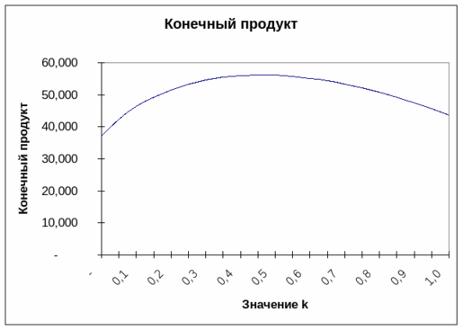 К сожалению, аналитически выразить k* не представляется возможным, однако, используя численные методы, его можно найти. В данном случае оно равно примерно 0,63. Таким образом, администрация коллективного хозяйства должна выбрать соответствующий коэффициент поощрения k, основываясь на показателях своего производства и на отличительных его особенностях.