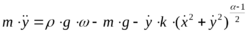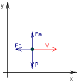 В данном случае, вместо лодки, идущей на какой-то глубине, рассматривается материальная точка с переменной массой, первоначально движущаяся горизонтально. Мы будем пренебрегать гидродинамикой этого процесса рассматривая только три основных силы действующих на эту точку.