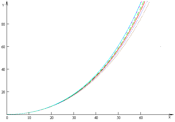 Рис. 6 При отрицательном значении праметра траектория будет практически совпадать с траекторией