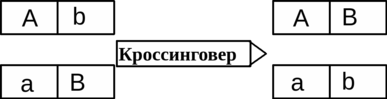 Благодаря кроссинговеру сцепленные гены могут передаваться потомству в сочетаниях, отличных от тех, которые были у родителей. В частности на рисунке родительская особь генотипа (AB)(ab) в результате кроссинговера породила гаметы (Ab) и (aB). Без кроссинговера мейоз привел бы к появлению гамет (AB) и (ab).