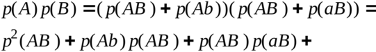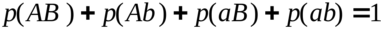 -частота гамет, у которых в первом локусе находится аллель A, а во втором - аллель b. Частоты генотипов в текущем поколении связаны с частотами гамет этого же поколения (до мейоза). Приведем примеры. Частота гомозиготного генотипа (AB)(AB) суть