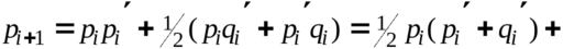 Очевидно, что частоты мужских гамет и генотипов совпадают. Поскольку женские особи получают от родителей одну женскую и одну мужскую гаметы, для следующего i+1 -ого поколения имеем следующие частоты женских генотипов.