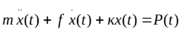 Запишем уравнение состояния для механической системы, представляющей собой груз массой m, подвешенный на пружине и соединенный с гидравлическим демпфером. К грузу приложена сила P(t), выходная переменная перемещения x(t), управляющие воздействия U(t)=P(t). Уравнение движения груза получаем из уравнения равновесия сил