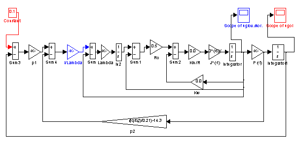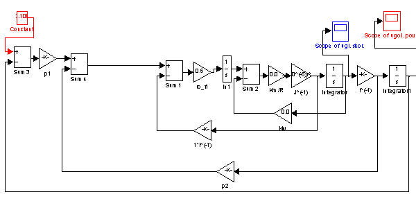 Построим теперь алгоритм управления углом поворота вала двигателя(угловым положением). Примем, что контур управления угловой скоростью синтезирован и его параметры
