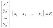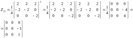 где m1+m2+…+ms=m, deg r(x) Составим дробно-рациональную функцию: Обозначим: где Если в (**) положить Для того, чтобы найти ak3 надо (**) продифференцировать дважды и т.д. Таким образом, коэффициент aki определяется однозначно. После нахождения всех коэффициентов вернемся к (*), умножим на m(x) и получим интерполяционный многочлен r(x), т.е. Пример: Найти f(A), если Найдем минимальный многочлен матрицы А: Проверим, определена ли функция на спектре матрицы А Умножим (*) на (х-3) при х=3 Умножим (*) на (х-5) Таким образом, Пример 2. Найдем минимальный многочлен матрицы А: d2(x)=1, тогда минимальный многочлен Рассмотрим f(x)=sin x на спектре матрицы: Вычислим , взяв производную (**): ЧТД. Пример 3. Пусть f(x) определена на спектре матрицы, минимальный многочлен которой имеет вид Решение: По условию f(x) определена на спектре матрицы А f(1), f’(1), f(2), f ‘(2), f ‘’ (2) определены. Используем метод неопределенных коэффициентов: Если f(x)=ln x f(1)=0 f’(1)=1 f(2)=ln 2 f’(2)=0.5 f’’(2)=-0.25 4. Простые матрицы. Пусть матрица Обозначим множество векторов удовлетворяющих собственному значению Теорема. Если квадратная матрица А имеет собственное значение DF. Размерность В свете этого определения теорема переформулируется следующим образом: Теорема. Алгебраическая кратность собственного значения не меньше его геометрической кратности. DF. Матрица Из линейной алгебры следует, что матрица Если матрица А простая, тогда существует n линейно независимых собственных векторов x1, x2, …,xn таких, что Замечание. Обратим внимание на то, что собственные значения А и А’ совпадают. Действительно, собственные значения для А’ это значения Рассмотрим следующую конструкцию: если матрица А простая, то существует n линейно независимых собственных векторов x1, x2, …, xn и существует n линейно независимых собственных векторов y1, y2,…,yn, где x1, x2, …, xn такие, что Запишем равенство (1) в виде DF. Множества векторов x1, x2, …, xn и y1, y2,…,yn удовлетворяющие условию Учитывая равенство (**) и определение делаем вывод: множества левых и правых собственных векторов простой матрицы А квазиортогональны и Очень важной для матриц является следующая теорема: СПЕКТРАЛЬНАЯ ТЕОРЕМА. Если А – простая матрица порядка n над полем С и p(x) многочлен из кольца C[x], и x1, x2, …, xn и y1, y2,…,yn – множества правых и левых собственных векторов матрицы А, то Следствие. Сопутствующие матрицы обладают следующими свойства: Пример. Показать, что матрица Решение: существуют 2 линейно независимые правые и левые системы собственных векторов. Найдем правые собственные векторы: Найдем левые собственные векторы: Найдем сопутствующие матрицы: 5.Спектральное разложение функции f(A). Спектральное разложение для f(A) имеет важное значение и очевидно тесно примыкает к спектральной теореме для простых матриц. Пусть дана матрица Теорема. Если Доказательство: заметим, что ЧТД. Опишем следующие свойств компонентных матриц, которые в некоторой степени обобщают свойства сопровождающих матриц. Теорема. Компонентные матрицы Замечание. Для того, чтобы найти компонентные матрицы для f(x) определенной на спектре матрицы А необходимо и достаточно знать базисные многочлены, входящие в интерполяционный многочлен, однако нахождение интерполяционного многочлена f(x) связано с некоторыми трудностями, а поэтому будем вычислять компонентные матрицы подбирая соответствующим образом системы функций. Пример: Найти комп