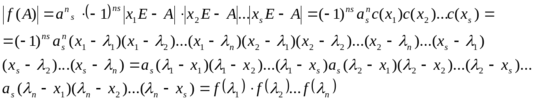Слева мы получили характеристический многочлен для матрицы f(A), разложенный справа на линейные множители, откуда следует, что