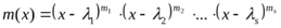 Пусть m(x) – минимальный многочлен А и он имеет такое каноническое разложение