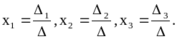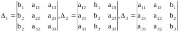 определитель n-го порядка i ( i=1,2,...,n) получается из определителя системы путем замены i-го столбца свободными членами b1 , b2 ,..., bn.