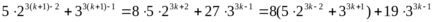 , очевидно, что и A(k+1) истинно. Действительно, первое слагаемое делится на 19 в силу предположения, что A(k) истинно; второе слагаемое тоже делится на 19, потому что содержит множитель 19. Оба условия принципа математической индукции выполнены, следовательно, предложение A(n) истинно при всех значениях n.