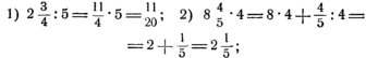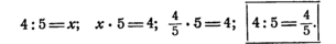 Мы нашли дробь, которая, будучи умноженной на 5, даст 4. Следовательно, деление произведено верно. Запишем: