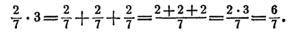 Следующим действием изучается умножение дроби на целое число. Умножение дроби на целое число определяется так же, как умножение целых чисел.