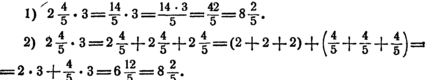 При изучении умножения смешанного числа на целое вначале рассматриваются два способа. Например: