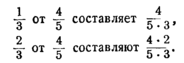 Отсюда выводится правило. Ошибка этого рассуждения в том, что распространяется переместительный закон на действие, которое еще не определено и не доказано, что оно обладает переместительным законом. Рассуждение было бы правильно, если бы оно построено было так: произведение целого числа на дробь должно быть составлено так, чтобы порядок сомножителей не имел значения, т. е. для действия умножения на дробь оставался бы справедливым переместительный закон. Была попытка дать общее определение действия умножения, пригодное и для целого и для дробного множителя. Это определение было дано в следующей формулировке: