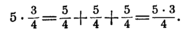 , умножим 5 сначала на 3, получим произведение 15, которое больше истинного, так как множитель увеличен в 4 раза; чтобы получить истинное произведение, надо полученное произведение 15 уменьшить в 4 раза, будем иметь