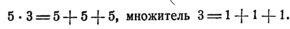 умножить одно число на другое значит из множимого составить новое число так, как множитель составлен из единицы. Смысл рассуждений при этом был следующий.