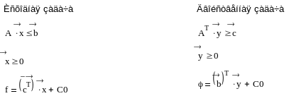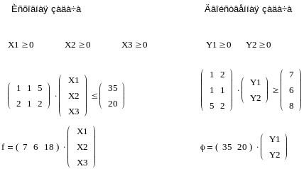 Из данного примера легко просматривается взаимосвязь между исходной и двойственной задачами.