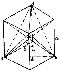 Интересно и то, что именно икосаэдр оказался в центре внимания биологов в их спорах относительно формы вирусов. Вирус не может быть совершенно круглым, как считалось ранее. Чтобы установить его форму, брали различные многогранники, направляли на них свет под теми же углами, что и поток атомов на вирус. Оказалось, что только один многогранник дает точно такую же тень - икосаэдр. Его геометрические свойства, о которых говорилось выше, позволяют экономить генетическую информацию. Правильные многогранники - самые выгодные фигуры. И природа этим широко пользуется. Кристаллы некоторых знакомых нам веществ имеют форму правильных многогранников. Так, куб передает форму кристаллов поваренной соли NaCl, монокристалл алюминиево-калиевых квасцов (KAlSO4)2 12Н2О имеет форму октаэдра, кристалл сернистого колчедана FeS имеет форму додекаэдра, сурьменистый сернокислый натрий - тетраэдра, бор - икосаэдра. Правильные многогранники определяют форму кристаллических решеток некоторых химических веществ. Проиллюстрирую эту мысль следующей задачей.