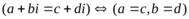 Два комплексных числа a + bi и c + di считают равными тогда и только тогда, когда равны между собой соответственно их действительные и мнимые части, т. е. a = с, b = d: