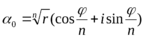 Извлечь корень n-й степени из комплексного числа z – это значит найти такое комплексное число α, что αn = z. Представим числа z и α в тригонометрической форме: z = r (cosφ + isinφ), α = ρ (cosψ + isinψ), где r = |z|, φ = Argz; ρ = |α|, ψ = Αrgα. Обозначим корень n-й степени из комплексного числа z через