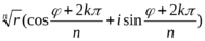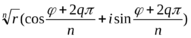 , т. е. значение аргумента при этом значении k отличается от значения аргумента при k = r на число, кратное 2π. Следовательно, при этом значении k получаем такое же значение корня, как и при k = r, т. е. при значении k=0, 1, 2, ..., n – 1.