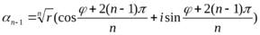 Полученные формулы определяют модуль ρ и аргумент числа α – корня степени n из комплексного числа z. Обратно, если дано комплексное число