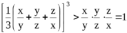 ; получим известный факт о том, что среднее арифметическое трех положительных, не равных между собой чисел больше их среднего геометрического).