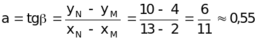 На рис. 10 приведена иллюстрация этого метода. Точки - результаты, полученные в эксперименте. Прямая проведена на глаз как можно ближе к экспериментальным точкам. На прямой выбраны точки М (2; 4) и N (13; 10). Коэффициент а характеризует угол наклона прямой.