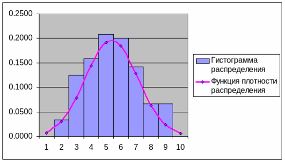 в одной системе координат с гистограммой.(