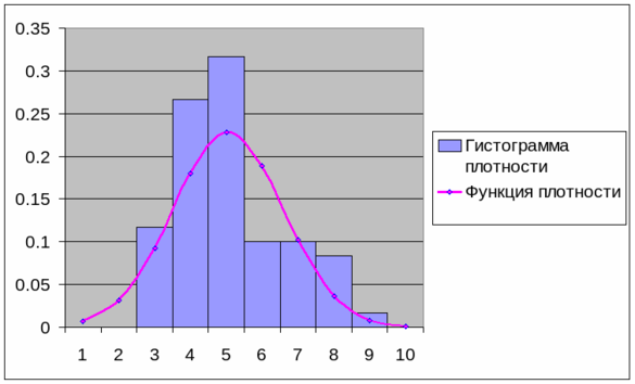 Построить график функции плотности распределения