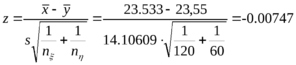 принимается. Предположение о равенстве математических ожиданий