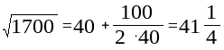 Еще 4000 лет назад вавилонские ученые составляли наряду с таблицами умножения и таблицами обратных величин таблицы квадратов чисел и квадратных корней из чисел? При этом они умели находить приближенное значение квадратного корня из любого целого числа. Вавилонский метод извлечения квадратного корня можно иллюстрировать на следующем примере, изложенном в одной из найденных при раскопках клинописных табличек: Найти квадратный корень из 1700.