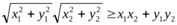 имеет место для любых действительных значений xi, yi. Равенство достигается в том и только том случае, когда числа xi и yi пропорциональны и коэффициент пропорциональности положителен.