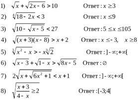 2 группа учит решение иррациональных неравенств, разобранных в классе, решает неравенства: