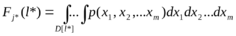 Область интегрирования находится из условия l(t)= l(x1, x2, x3…xm;t)< l*. Вероятность отказа по критерию остаточного ресурса находится как вероятность выполнения неравенства l(t)>l*: