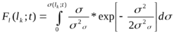 Даже при фиксированных значениях l* ресурс будет случайной величиной. Это связано со случайной зависимостью l(t). Дополнительную неопределенность вносит случайный характер критического размера l*, зависящего от случайных факторов. Плотность вероятности находится по тем же правилам, что и распределение (12).