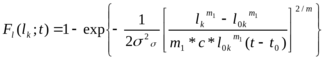 Найдем распределение длин дефектов Fl(lk;t) по формуле (12), которая примет вид: