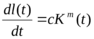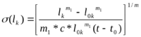 К моменту времени t размер дефекта l(t) будет случайным с плотностью вероятности pl(l;t), где t играет роль параметра. Для нахождения распределения pl(l;t) воспользуемся правилами вычисления распределений для детерминистических функций случайных величин (3). В частности, если имеется детерминистическая функция (11), то функция распределения Fl(l;t) находится так: