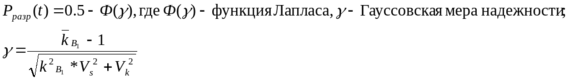 Далее рассчитываем Pразр(t) для различных значений коэффициента запаса kB1 и коэффициентов вариации (Vs) и (VR) . Для этого расчета используем следующие зависимости:
