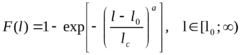 Для численного примера аппроксимируем функцию распределения длин дефектов F(l) и критических дефектов асимптотическими распределениями Вейбулла с параметрами l0, l*0, lc, l*c, a, a1: